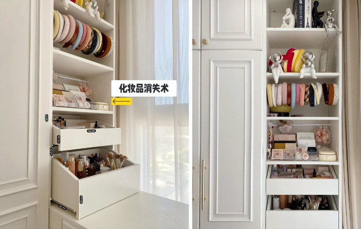 女生化妆品往往数量惊人,即便有化妆桌也容易乱成一团。没有收纳规划,早上找个口红都能翻半天。
