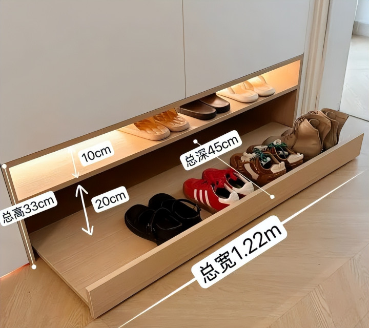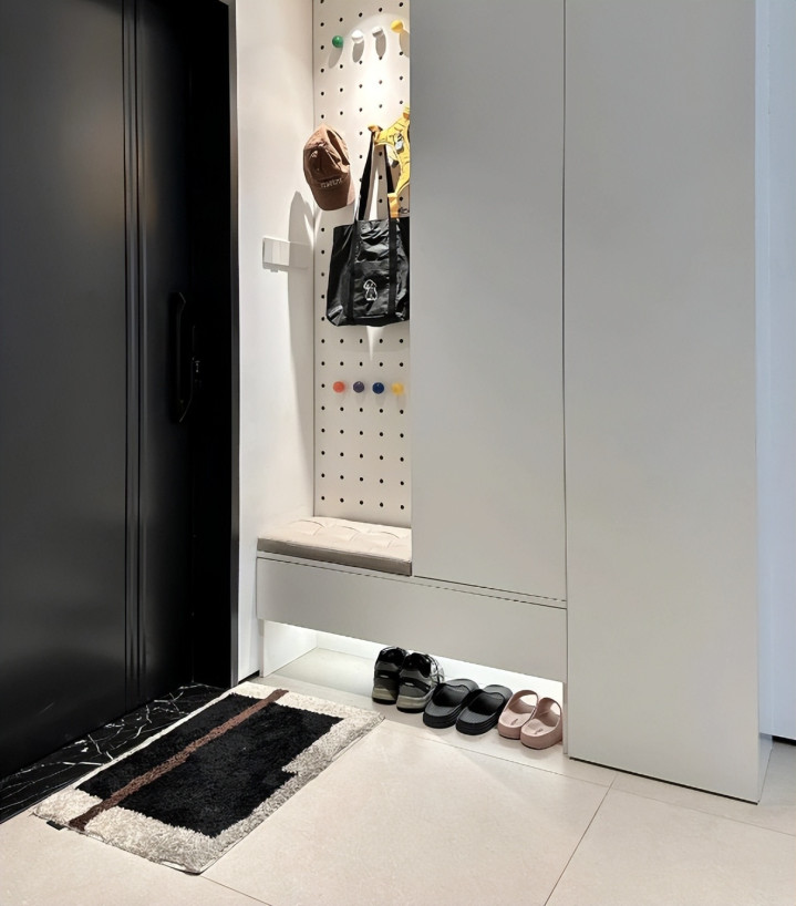 玄关鞋柜是必备的,但很多人只想着放鞋,把拖鞋随便堆在底层空隙里。结果就是拖鞋总乱成一团,而且地面灰尘容易堆积。