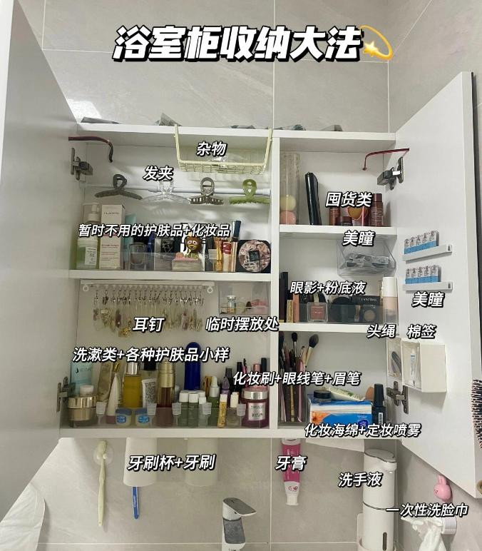 1、分区收纳:不同类型的化妆品分开,比如底妆、护肤、彩妆各自有抽屉或小格子,这样拿取方便,也不容易混乱。
