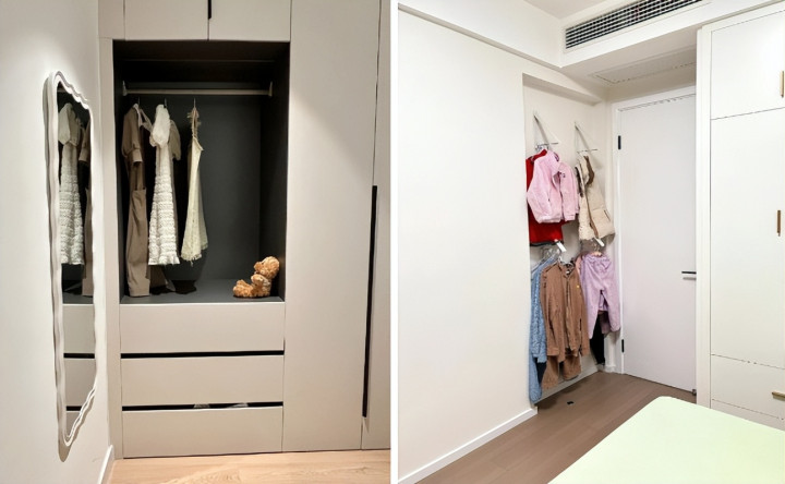 衣柜是衣服的主要收纳地,但生活中很多衣服不是“直接进柜”的。进门脱下的外套、卧室睡前脱掉的衣物、洗澡换下的衣服,如果没规划好位置,很容易堆在沙发、床或者飘窗上。所以必须提前规划收纳点,否则衣服永远乱。
