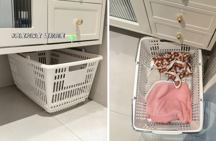 3、卫生间:洗澡换下来的衣服直接放移动脏衣篮,干净整齐,也便于分类清洗。