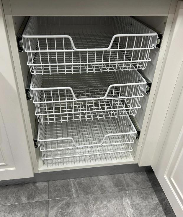 2、装修时可在橱柜设计开放拉篮区,既方便通风,又方便拿取,保持厨房整洁。